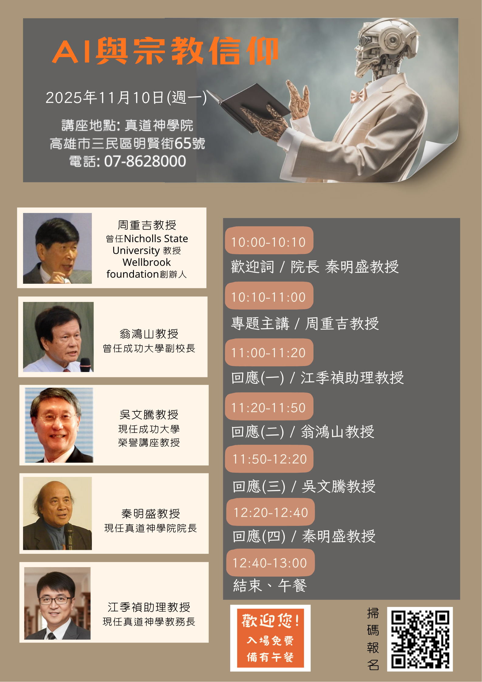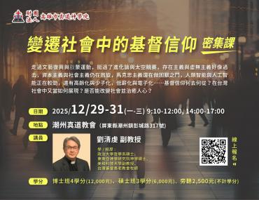 1. 懇請安排2025年神學主日...(企劃處-2024/09/10) 2. 最新院訊-第80期...(企劃處-2025/09/05) 3. 2025學年度第一學期課表...(教務處-2025/06/04) 4. 2025年度行事曆...(教務處-2024/11/20) 5. 2025學年度新生錄取公告...(教務處-2025/08/12) 6. 相關收費明細...(教務處-2023/08/01) 7. 2025年度招生中...(教務處-2025/01/23) 8. DVD課程要求...(企劃處-2022/06/24) 9. 真道神學院入學申請書...(教務處-2022/06/20) more...